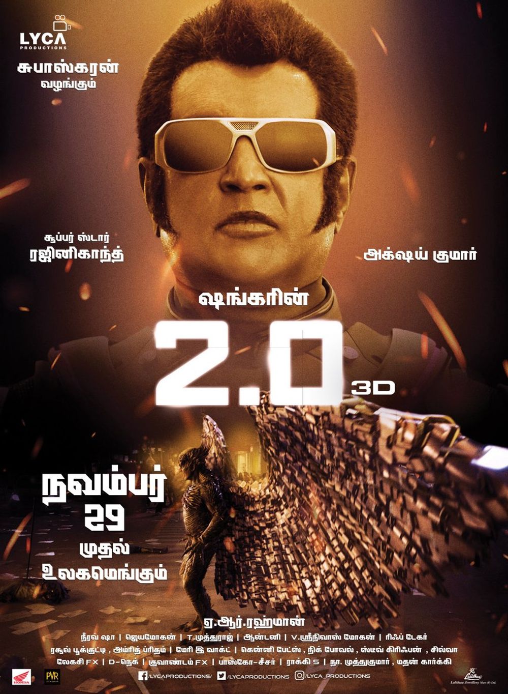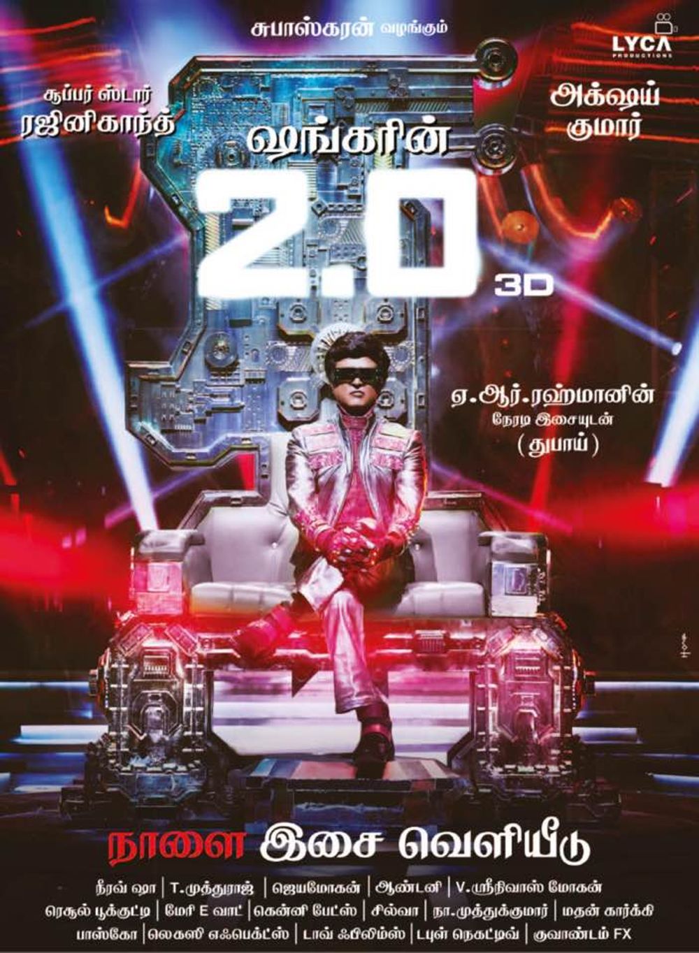 Crew: Shanmugam Shankar (Director), Nirav Shah (Director of Photography), AR Rahman (Music Director)