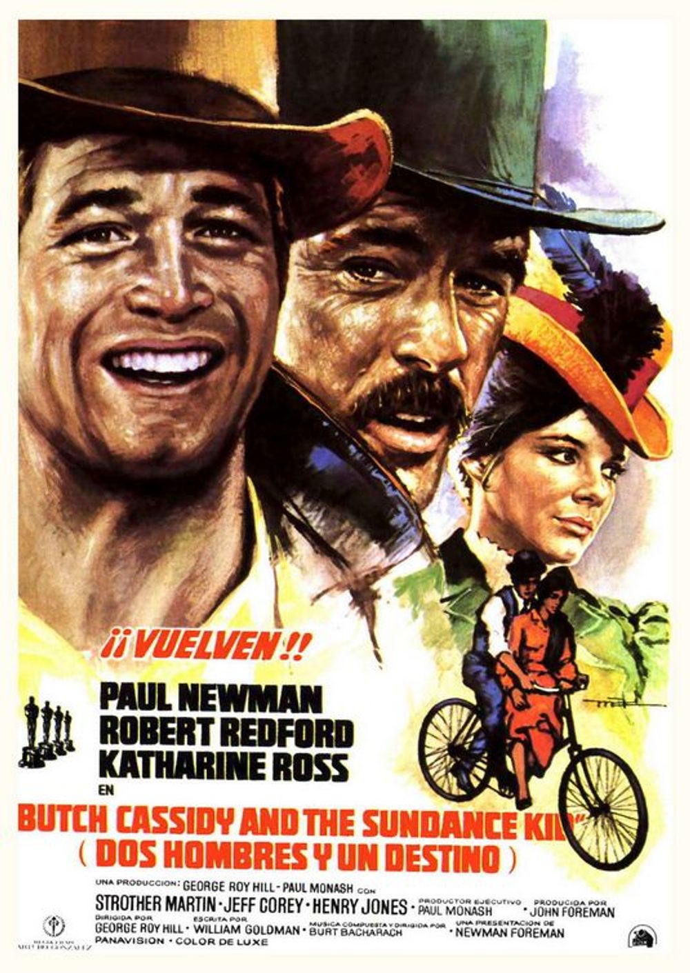 The first robbery goes very well and the Marshal of the next town can't manage to raise a posse. Butch and Sundance listen to his attempts, enjoying themselves. Sundance's lover, Etta Place (Katherine Ross), is introduced. But obviously both men vie for her attention as she also goes bike-riding with Butch, a dialogue-free part of the film, accompanied by "Raindrops Keep Falling on My Head."