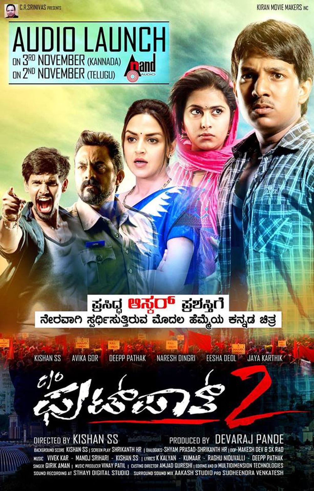Crew: Kishan SS (Director), K Dev Magesh (Director of Photography), SK Rao (Director of Photography), Kishan SS (Music Director), Manoj Srihari (Music Director), Vivek Kar (Music Director)