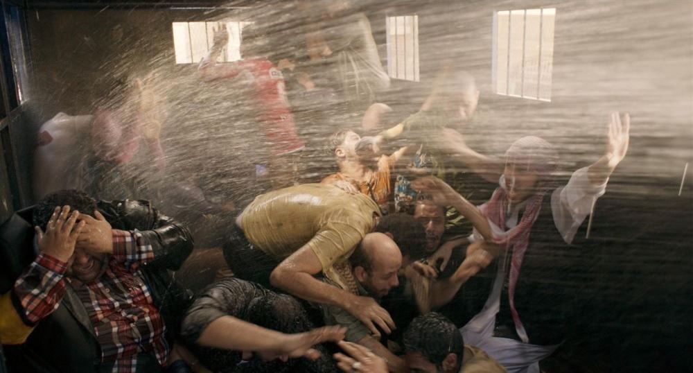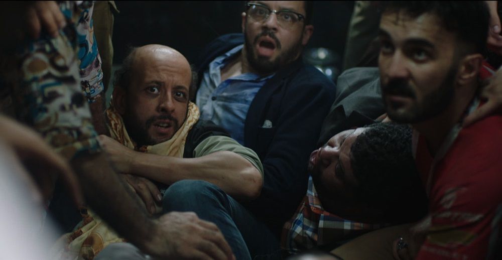 Mohamed Diab brushes aside petty politics and ideals in his take on the riot stricken period of his nation. He throws in members and supporters of the Muslim Brotherhood and the military along with a couple of journalists in a cramped truck and closes the door. In this menagerie, there exists people of all ages, regions and religions, and all spewing hatred towards each other. Quite unsurprisingly a brawl erupts between the opposing factions and only a water gun blast can separate them. Bloodshed and gore seemed to be near as the blue police truck squeezed its way past and through several rallies. But Man’s socialistic nature overtook violence and came forward. Ideals and loyalties took a back seat as the warring factions teamed up to fight the common enemies. Diab’s genius fielded the stuffiness of the van and the Egyptian heat to harmonize the inmates as they took turns to come near the open door for air. When a MB sniper was aiming for the truck, the arrested shouted his location to the police without caring for their allegiances. A hand was lent when nature called and the supposed rivals found a way out to help a young girl answer it without shaming her. A Muslim Brother’s forehead was sliced open in an earlier brawl, and the Mother, stepped forward to do her duties as a nurse. An upcoming DJ passed around his cards and an innocent game of tic-tac-toe was being scratched on the steel walls. ‘Order from Chaos’ is never really an option and Diab emphatically points it out without taking any side.