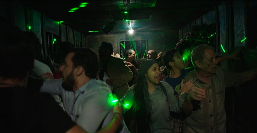 The opening shot is one of the most precise and innovative ones ever used. Diab, while narrating a historical fact, could have easily gone overboard with the details, and shown flashbacks and stills of the original war. But instead, he chose to fix his camera inside that blue truck and in three short sentences on the screen, tell us the exact background of the Egyptian Revolution. The van strikes an ominous note from the very beginning and slowly gets filled with the people, making us more and more claustrophobic by the minute. Even in the limited environment for camera movement and artificial light, Diab and cinematographer Ahmed Gabr gave us sublime imagery worthy of a classic pastoral poetry. The filtering sunlight through the netted windows seemed to add a heavenly glow on the Mother’s face. The sweaty faces and the eyes wrought with tension were captured immaculately on camera. The laser lights have been used to a great effect, marking out the terror like an approaching fleet armed with light sabers. The ending is gruesome and horrific, when barbarism breaks through the shackles set by humanity. As each inmate is dragged out to be lynched by a Muslim Brother mob, the truck flips over and the trapped cling on to each other. The final shots are of the broken watch camera and the unfinished game of tic-tac-toe, the only remaining witnesses to the unimaginable and magical bond of humanity.