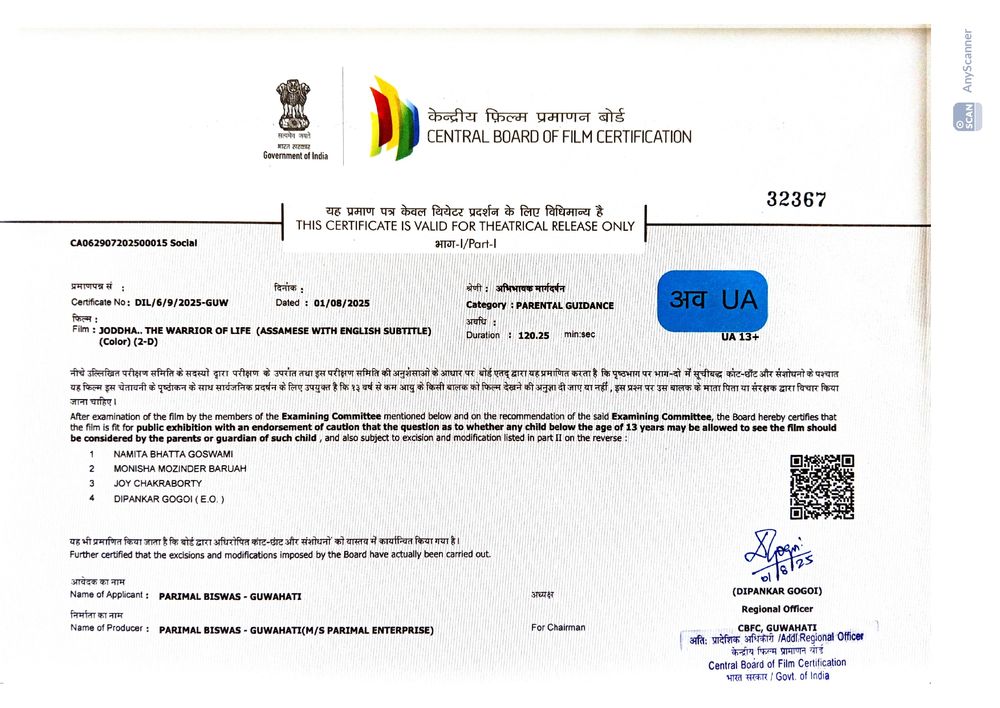 Crew: Bhaskar Jyoti Goswami (Director), Abhijeet Gogoi (Director of Photography), Zubeen Garg (Music Director)