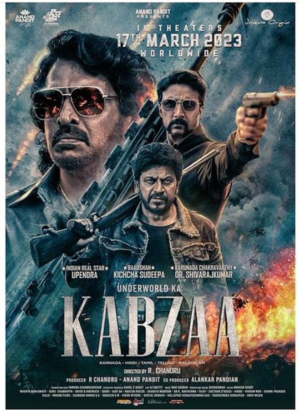 Crew: R Chandru (Director), Kiran Mysore (Assistant Production Manager), Mahanthesh (Assistant Production Manager), Arjun Shetty (Director of Photography), Chethan Handattu (Music Producer), Ravi Basrur (Music Director)