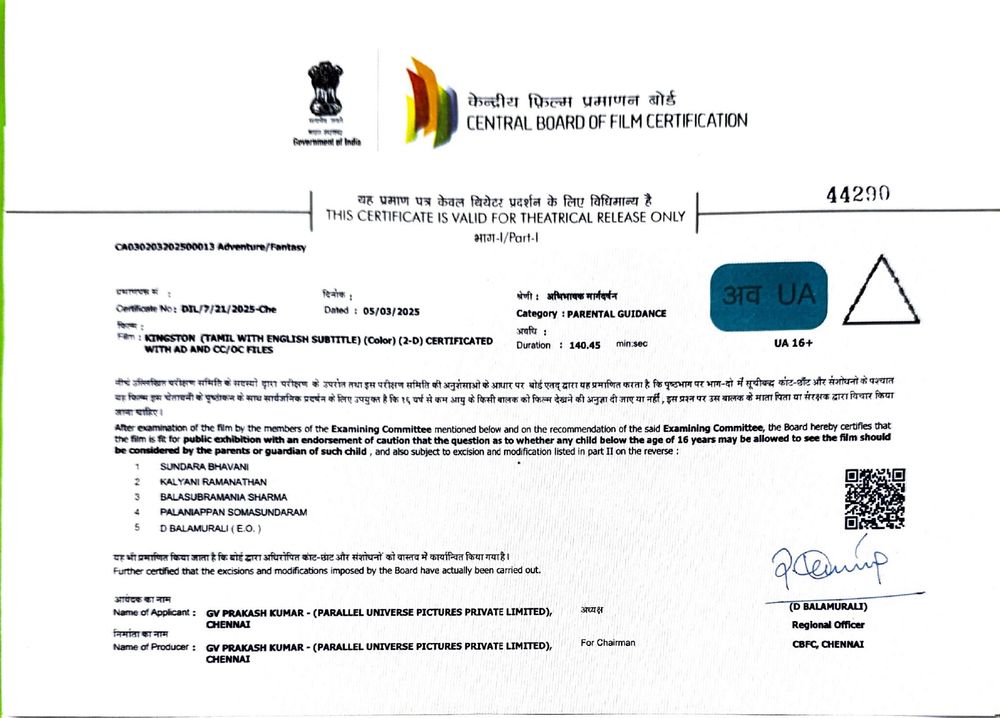 Crew: Kamal Prakash (Director), Gokul Benoy (Director of Photography), GV Prakash Kumar (Music Director)
