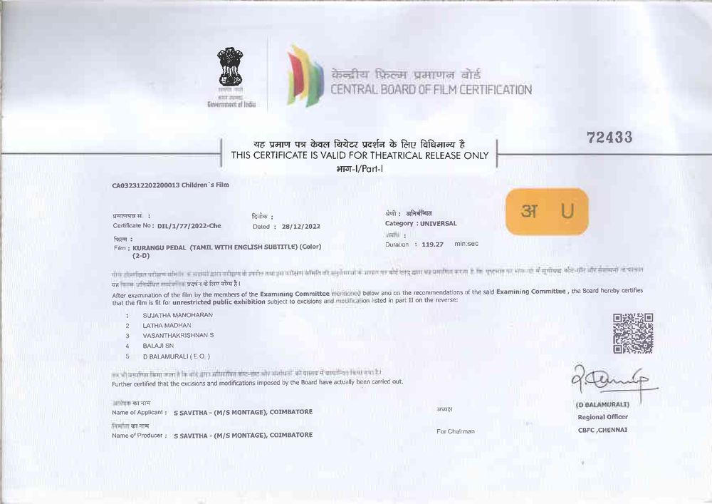Crew: Kamala Kannan (Director), Sumee Baskaran (Director of Photography), M Ghibran (Music Director)