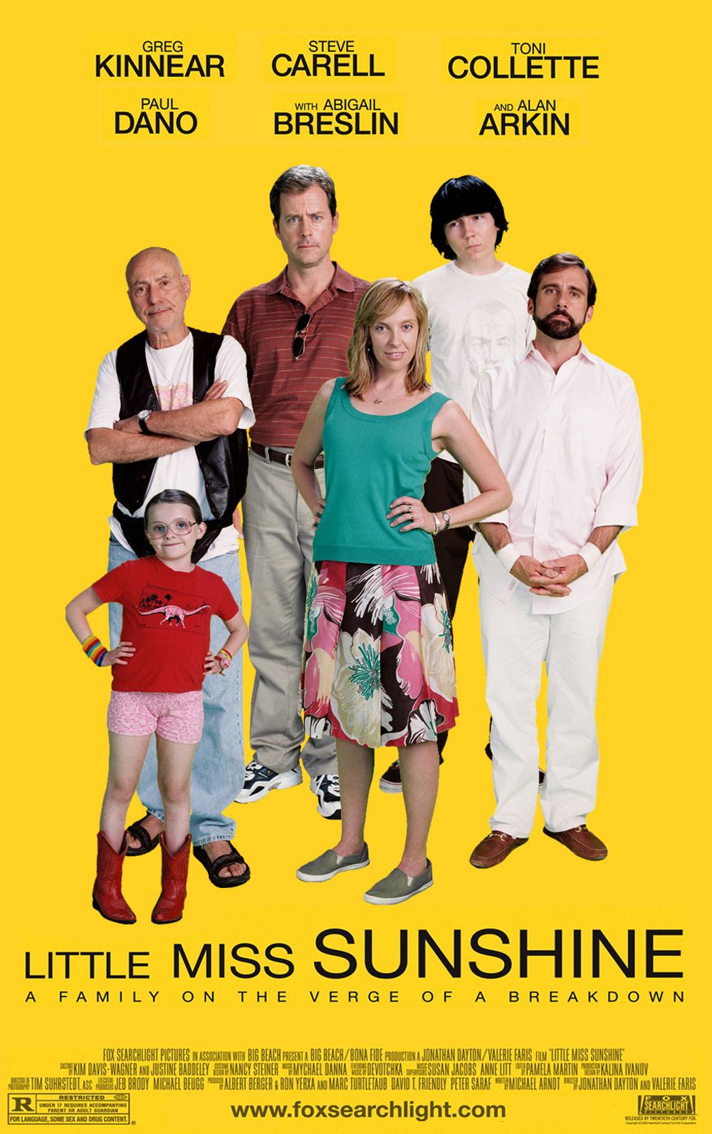 Sheryl Hoover (Toni Collette) is an overworked mother of two children who lives in Albuquerque, New Mexico. Her gay brother Frank (Steve Carell) is a scholar of French author Marcel Proust, temporarily living at home with the family after a suicide attempt. Her arrogant, goal-obsessed husband Richard (Greg Kinnear) is striving to build a career as a motivational speaker and life coach.
