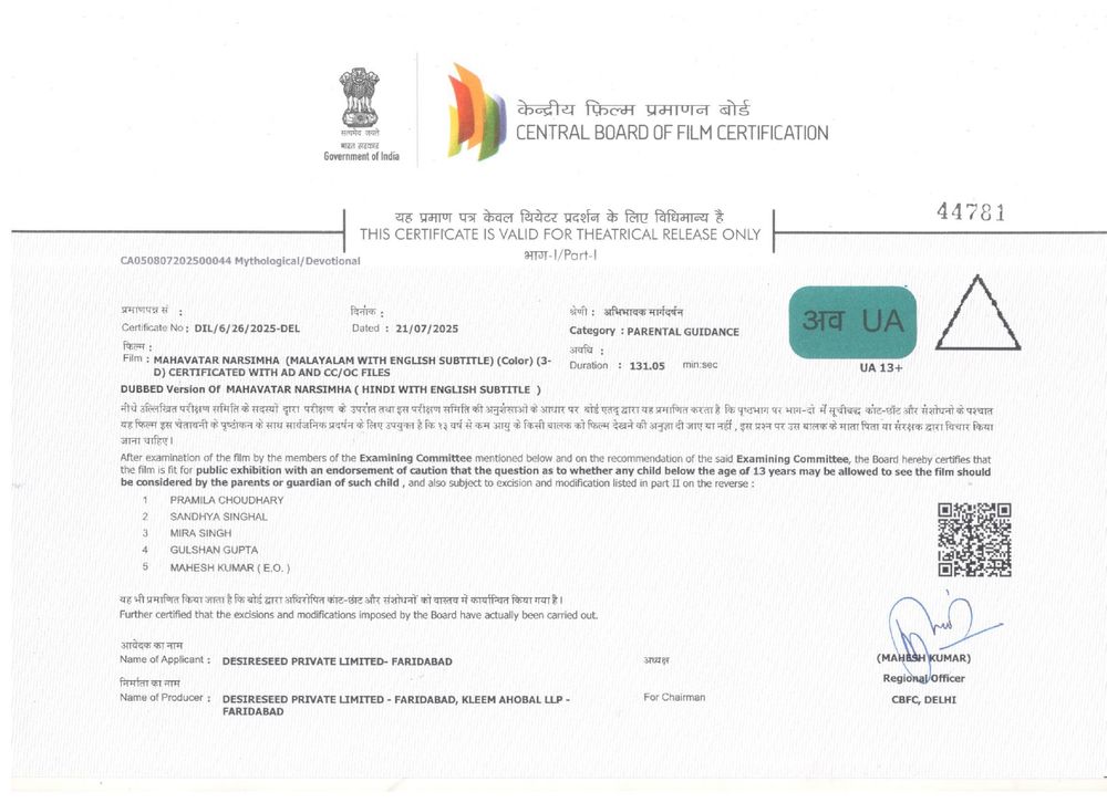Rating: UA 13+ (India)