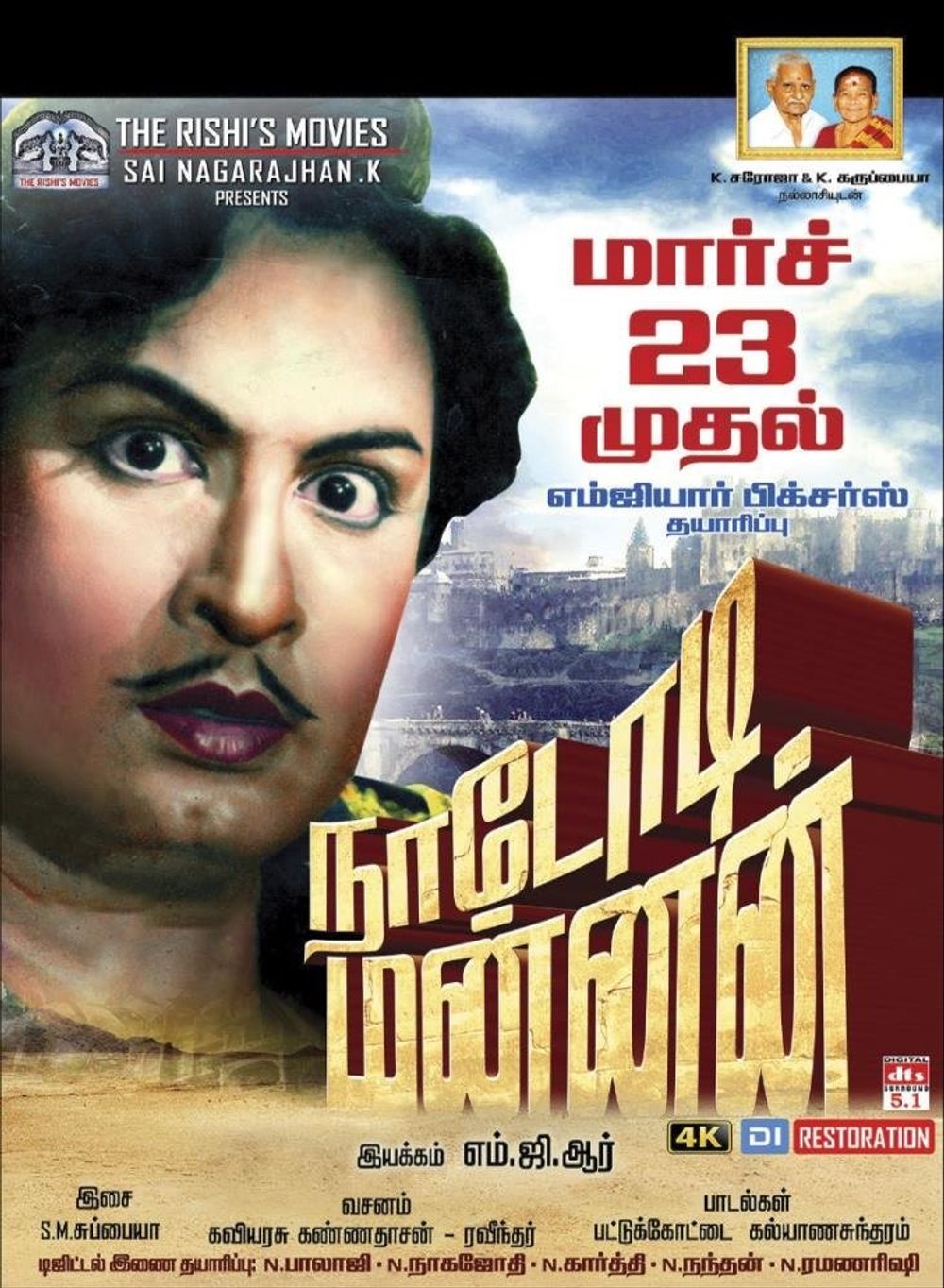 In the meantime Marthandan arrives at Ratnapuri, but the Rajaguru asks him to stay in an isolated palace in the outskirts and should not meet his consort Queen Manohari (M. N. Rajam) until the coronation, citing the inauspicious placement of the stars. The twist in the tale comes when we come to know that Marthandan and Veerangan are look-alikes. Veerangan is mistaken for Marthandan in a few tight situations and finally they get to meet each other. Veeran (MGR) on the run from monarchists ends up in the room of his lookalike prince Marthandan. Veerangan speaks of the pathetic state of the poor and the oppressed and the noble Marthandan agrees to set right the ills as soon as he takes charge.