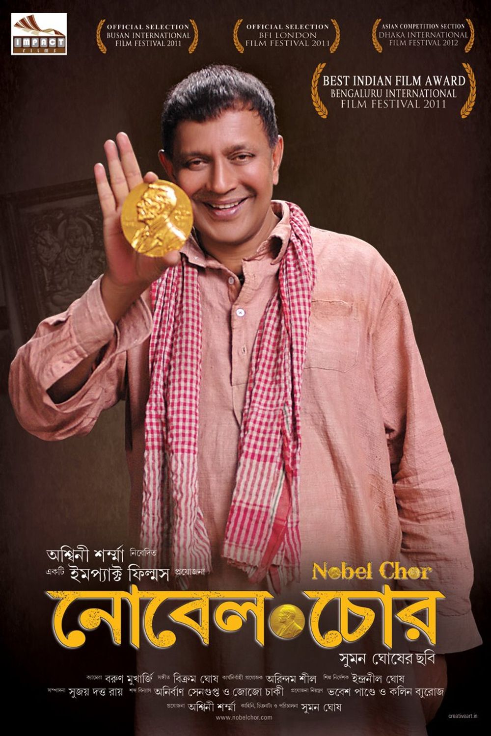 The first Asian Nobel Laureate, Rabindranath Tagore, is still revered as an icon in India. On 24 March 2004, his Nobel medal was stolen from Shantiniketan in Bengal, where it was housed in his residence turned museum. Subsequently a nationwide furor started and a massive search operation was put in place to find the guilty. Ultimately the medal was not found and the Central Bureau of Investigations (CBI) dropped the case in 2010. With this in the backdrop "Nobel Chor" (The Nobel Thief is a fictional account of a poor farmer, Bhanu, who circumstantially gets involved in the theft. He decides to embark on a journey to the City of Joy – Kolkata – to return or sell the prize with a view to improve his own quality of life as well as that of his impoverished village.