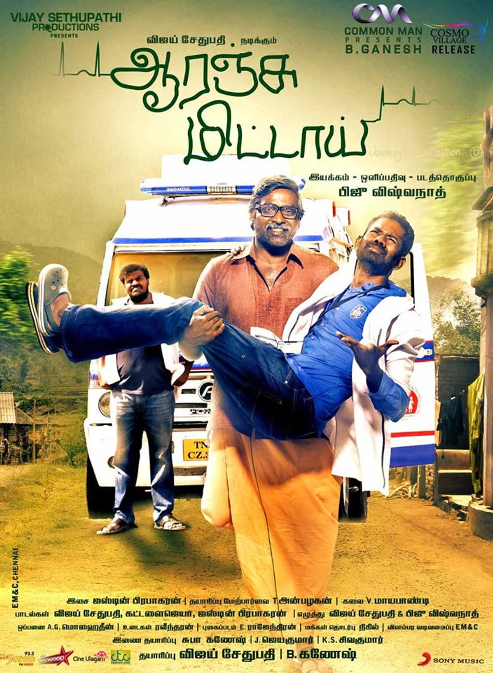 Performance wise,Vijay Sethupathi as Kailasam aces the film with the right tones of sarcasm and longing.His attention seeking old man act who can really get on ones nerves is laudable.Ramesh Thilak as the EMT technician Sathya is sincere but its his loud friend Arumugam(Arumugam Bala) who plays the ambulance pilot who walks away with some better funny scenes ans one liners.Aashritha(Kavya in the film) as Sathya's lady love is adequate in her teeny weeny role.Her expressions when Sathya visits her house to speak to her father are convincing and cute.