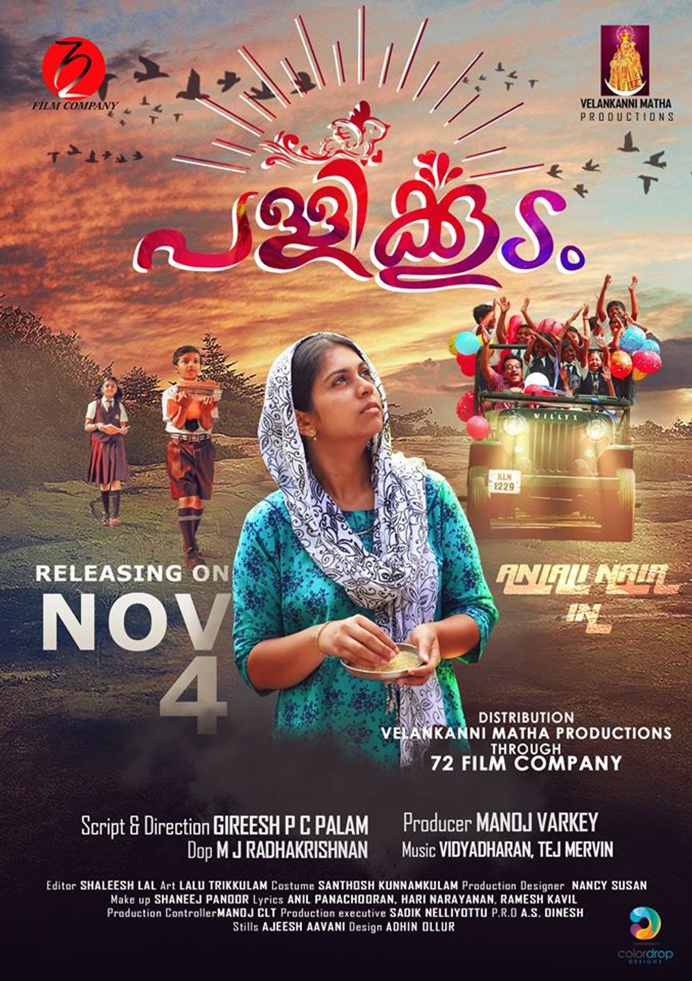 Crew: Gireesh PC Palam (Director), MJ Radhakrishnan (Director of Photography), Thej Mervin (Music Director), Vidhyadharan Master (Music Director)