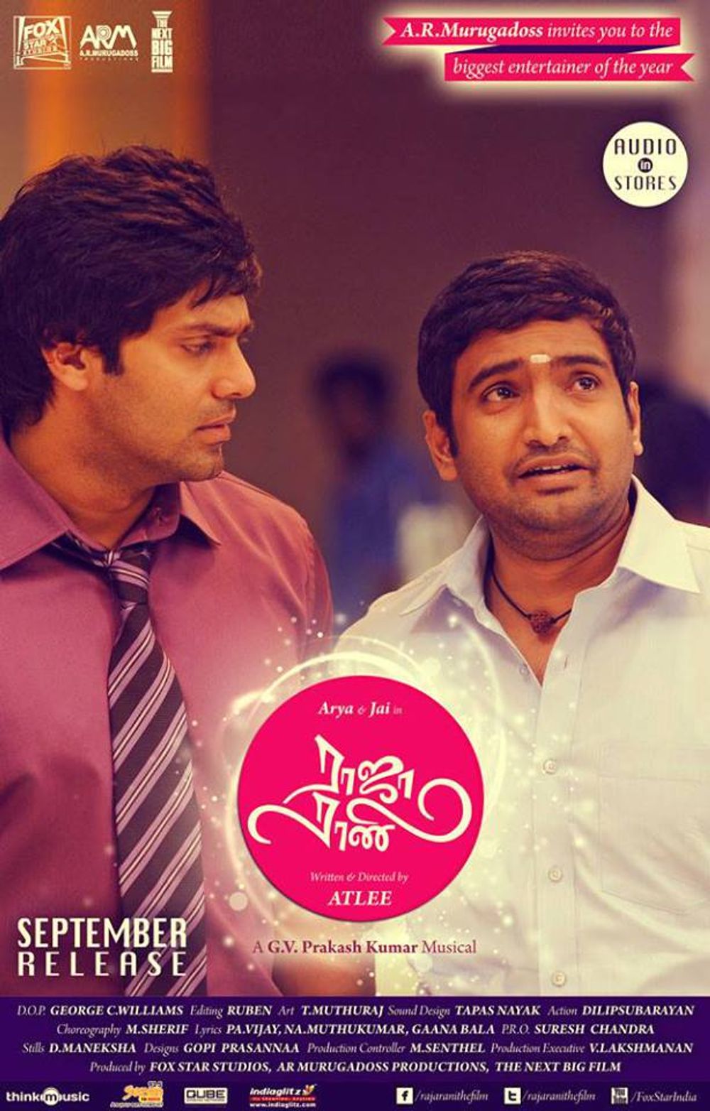 Crew: Atlee Kumar (Director), George C Williams (Director of Photography), GV Prakash Kumar (Music Director)
