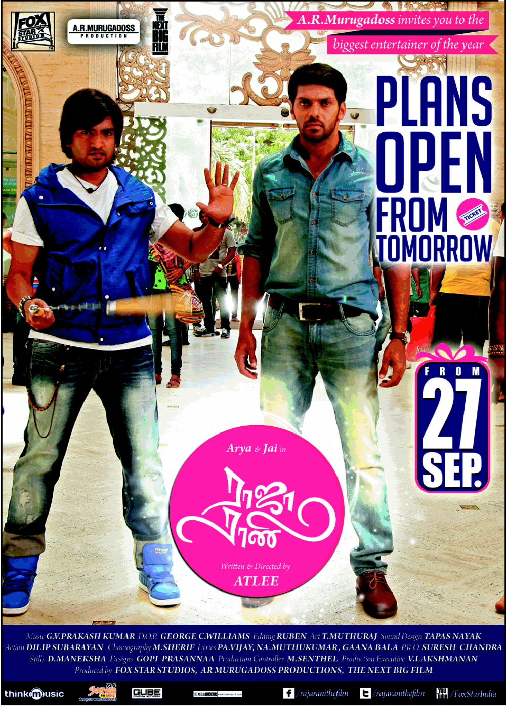 Cast: Arya, Jai, Nayanthara Kurian, Nazriya Nazim