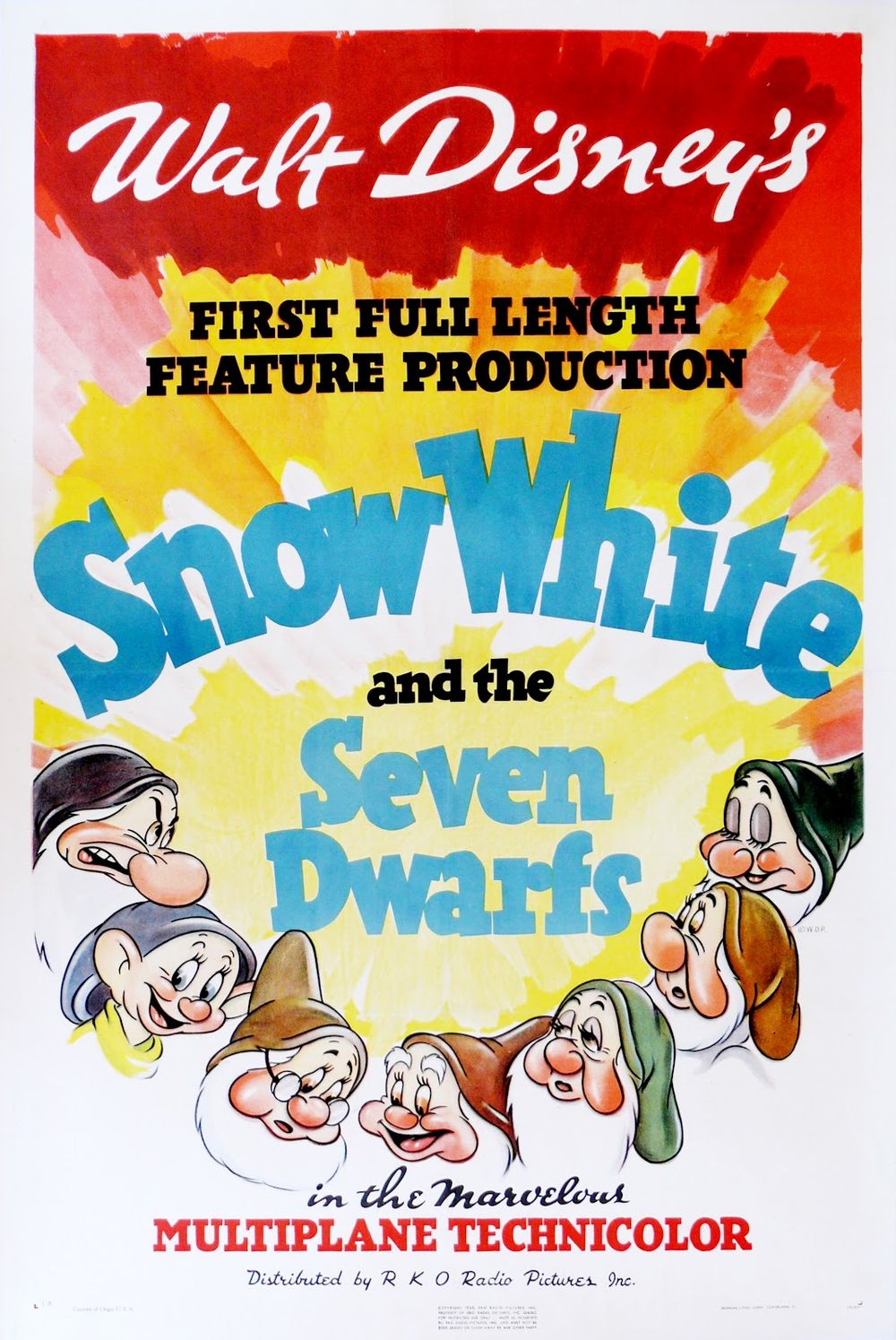 In reality, the cottage belongs to seven adult dwarfs, named Doc, Grumpy, Happy, Sleepy, Bashful, Sneezy, and Dopey, who work in a nearby mine. Returning home, they are alarmed to find their cottage clean and suspect that an intruder has invaded their home. The dwarfs find Snow White upstairs, asleep across three of their beds.