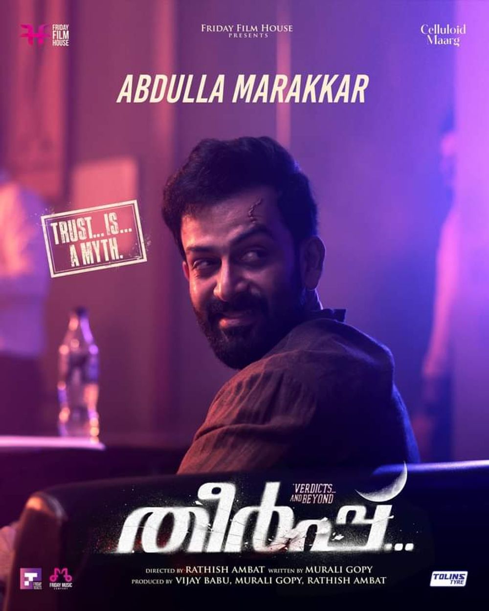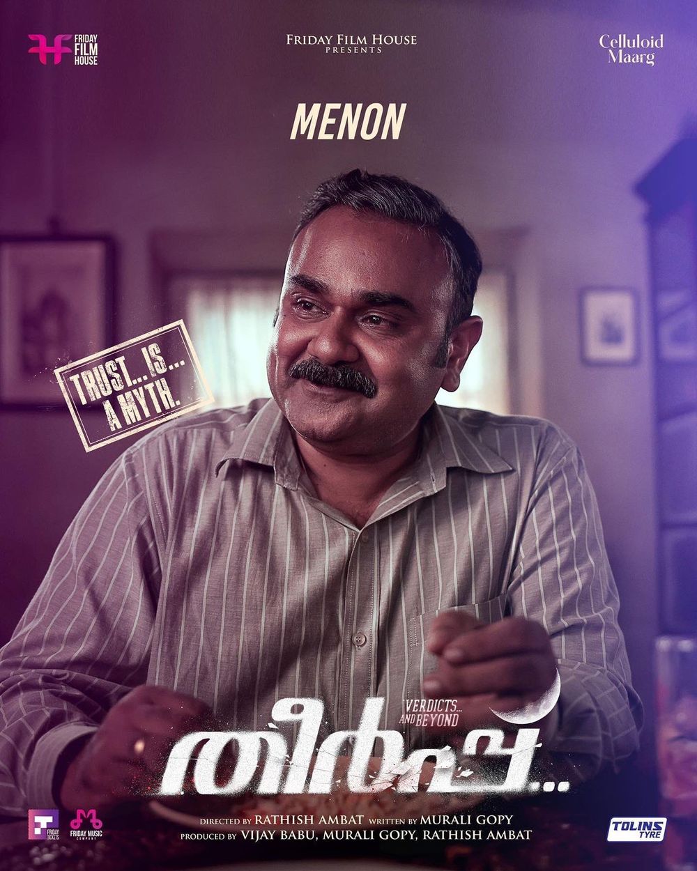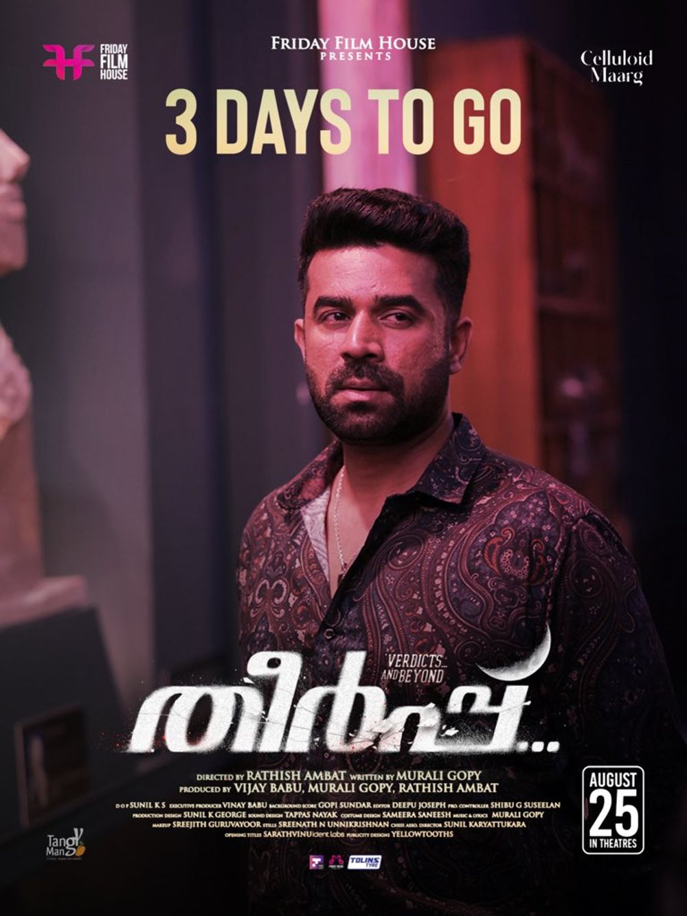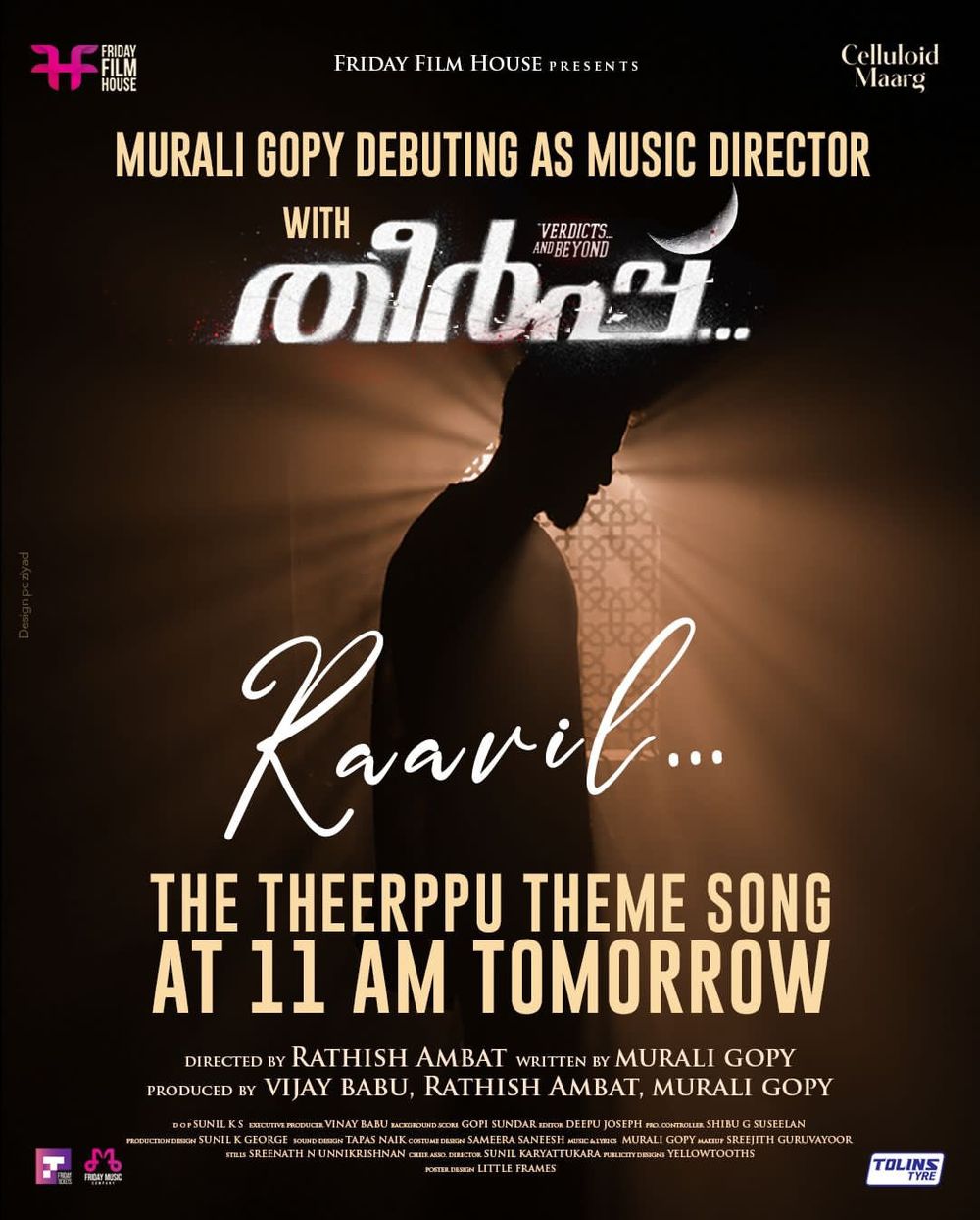 Crew: Rathish Ambat (Director), Sunil KS (Director of Photography), Babu Velayudhan (Music Producer), Murali Gopy (Music Director), Avenir Technology (Digital PR), Yellow Tooths (Publicity Designer)