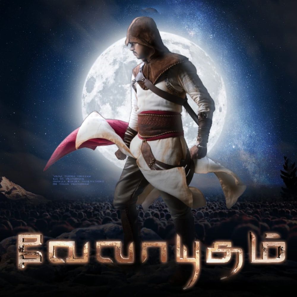Meanwhile there is Velayudham, an ordinary milkman living in a small village who dotes on his little sister (Sarnya Mohan) and his life revolves around her, though his cousin Vaidehi (Hansika) is crazy about him. One day Velu comes to Chennai to withdraw the money he had deposited in a chit fund for his sister's wedding. In the city, he meets Bharati and due to circumstances is forced to become the fictional character Velayudham, the heroic warrior and crusader who takes on the scum of the earth.